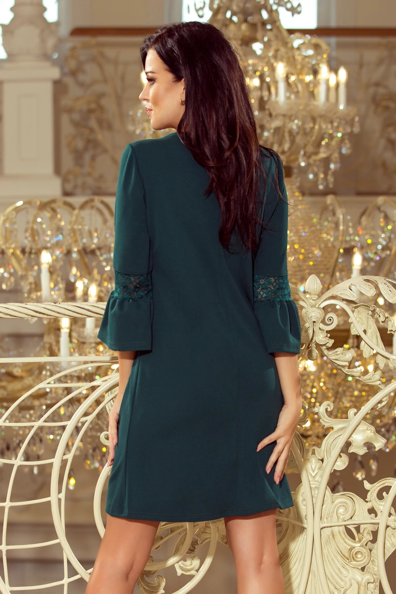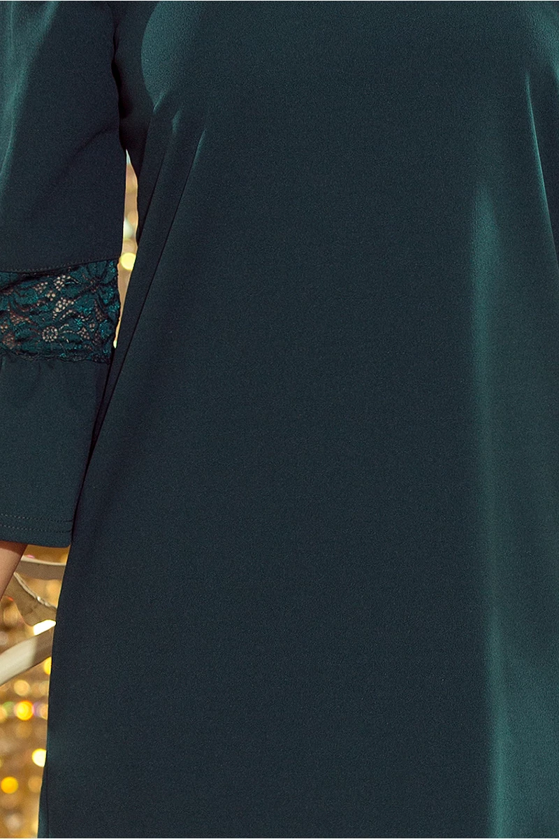 Margaret A vonalú ruha ujjain csipkével | sötétzöld